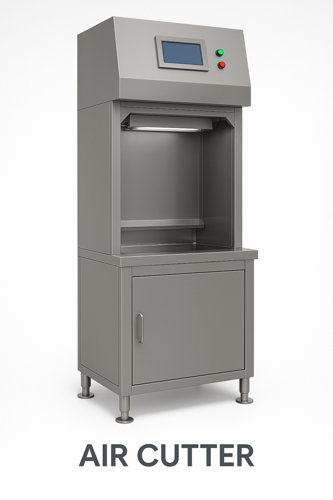 The Air Cutter uses precision-directed airflow to prevent particulate ingress during sensitive manufacturing operations.