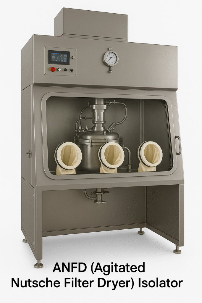 This isolator ensures safe filtration, drying, and product discharge from ANFD systems under controlled containment.