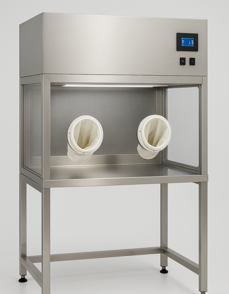 A sealed workspace for the handling of toxic or sensitive materials, the glove box ensures safe manipulation under negative pressure containment.