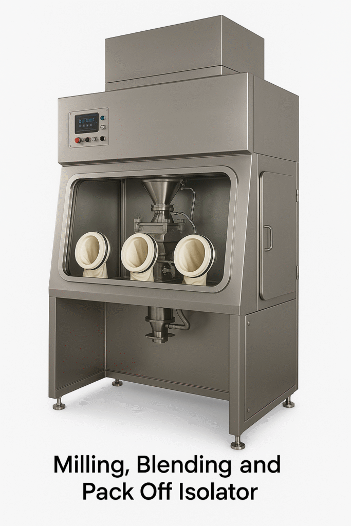Designed for integrated containment during size reduction, blending, and final packing of APIs, this isolator minimizes airborne particle release and operator exposure.