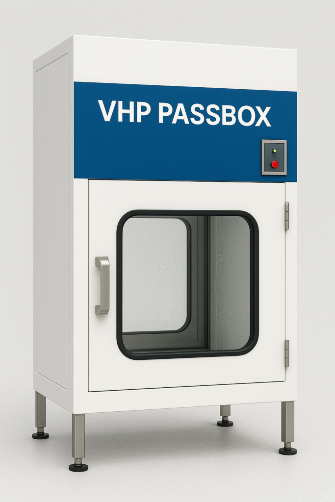 The VHP Passbox uses Vaporized Hydrogen Peroxide sterilization to decontaminate materials during transfer between controlled environments, ensuring zero microbial carryover.
